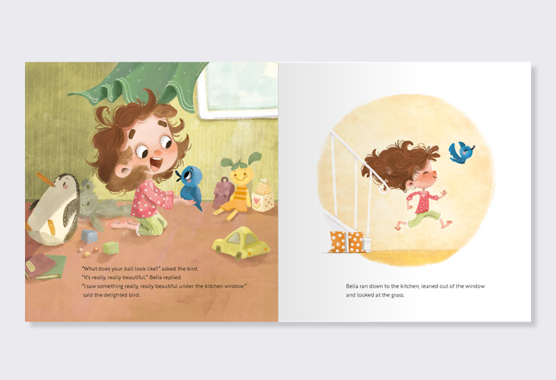 The sun is lovely and warm, so Bella runs outside to play with her ball. But where has it rolled to? With the help of a butterfly, Mitzi the cat, Ally the dog and an inquisitive bunny hopping around the garden, will Bella be able to find it?