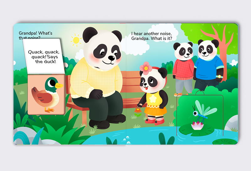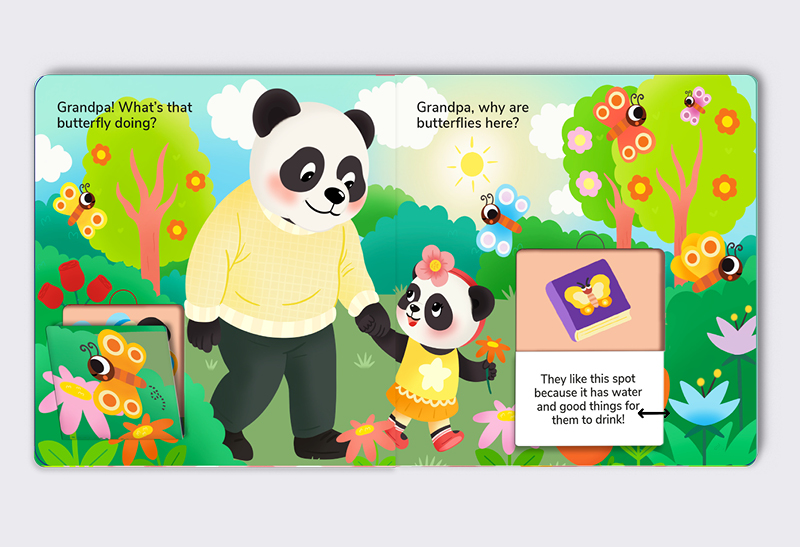 Join Baby Panda and Grandpa Panda on a day full of wonder, giggles, and discovery! From spotting birds in tall trees to sniffing flowers in the garden, every moment is a chance to explore the world together. With interactive lift-the-flaps on every page, little readers will uncover sweet surprises and learn something new—just like Baby Panda.