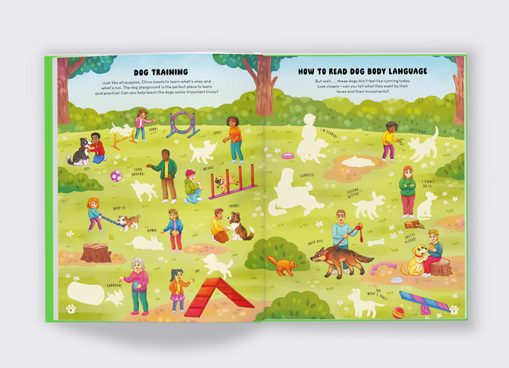 From understanding dog body language to learning basic training commands, kids will explore the world of canine care in a playful, age-appropriate way. Whether they’re helping Chico make new friends or designing their own doggy scenes, every page is filled with creativity, kindness, and puppy-powered fun.