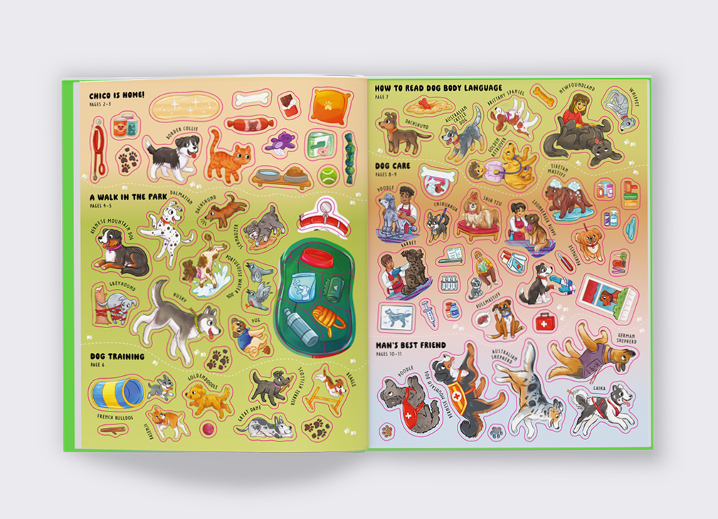 Join Chico on a tail-wagging adventure through parks, training grounds, shelters, and dog shows! Packed with more than 170 colorful stickers, fun facts, and hands-on activities, this interactive sticker book is perfect for young animal lovers who want to learn all about dogs—while having a blast.